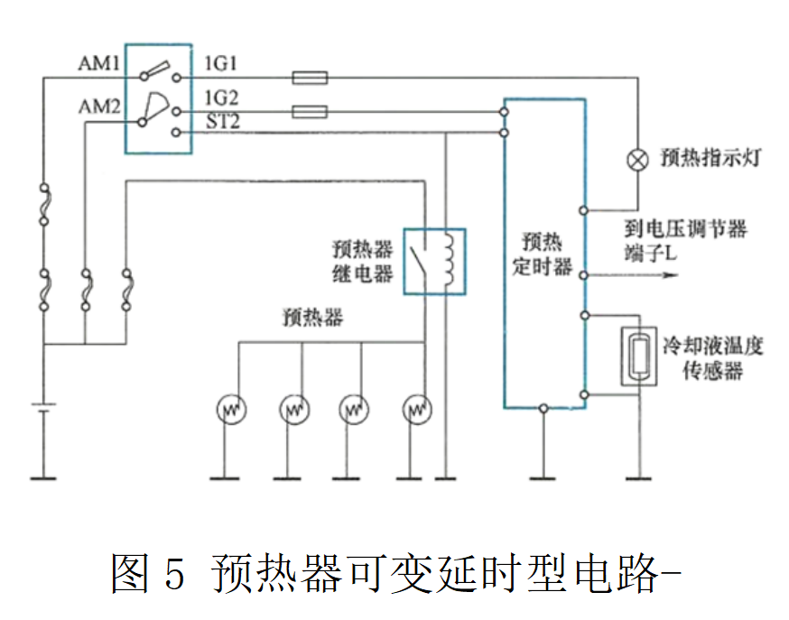 預(yù)熱系統(tǒng)的電路有兩種類型,即固定延時(shí)型電路和可變延時(shí)型電路。