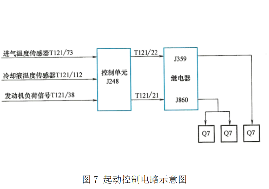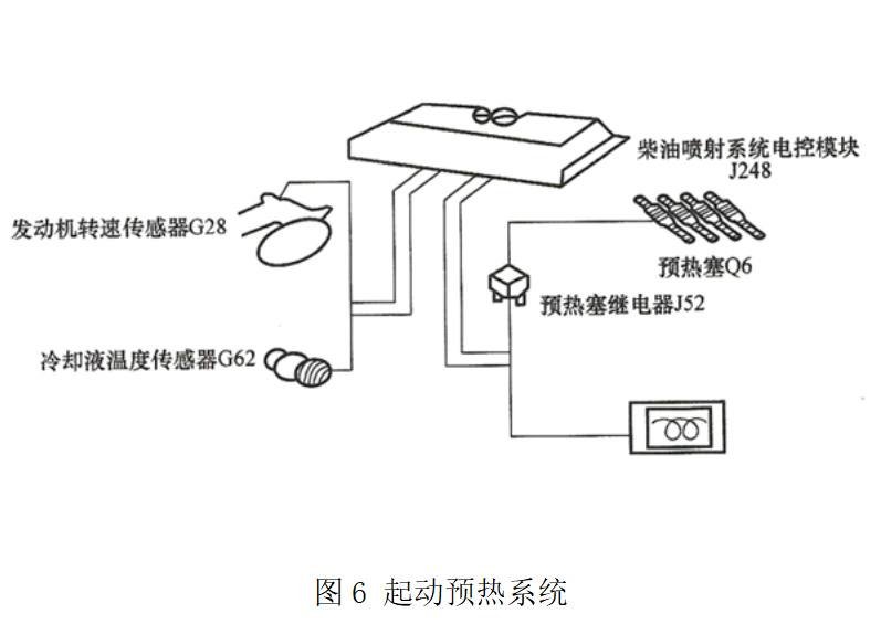 ③ 電控模塊控制型電路,起動(dòng)預(yù)熱系統(tǒng)(如圖6所示)